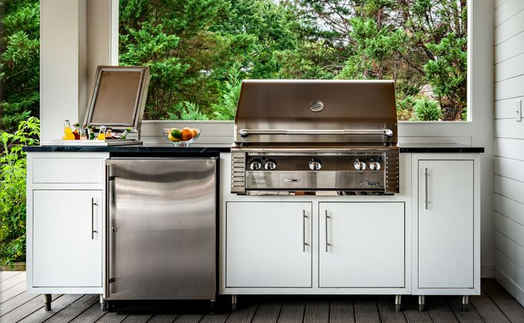 The outdoor kitchen units feature durable, weather-resistant materials, including rust-proof stainless steel and long-lasting premium finishes