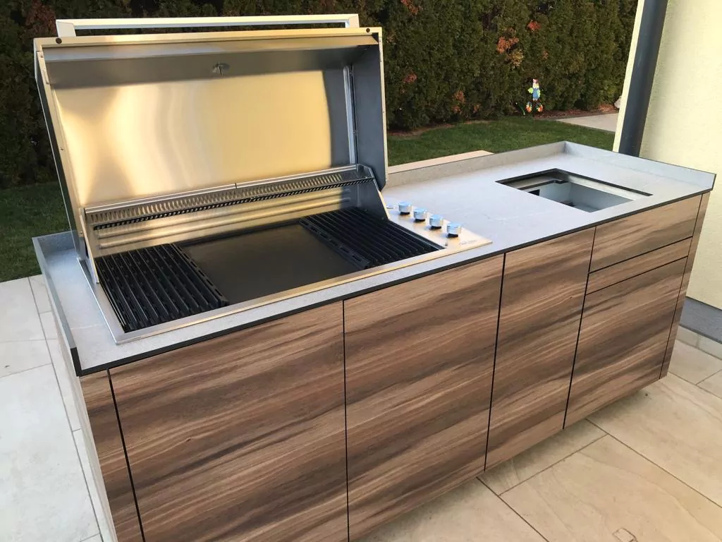 Gusto Grills offers premium outdoor BBQ kitchens with durable materials like HPL, aluminum alloy, and marble countertops. Built to withstand the elements, our kitchens combine style, durability, and lasting quality.